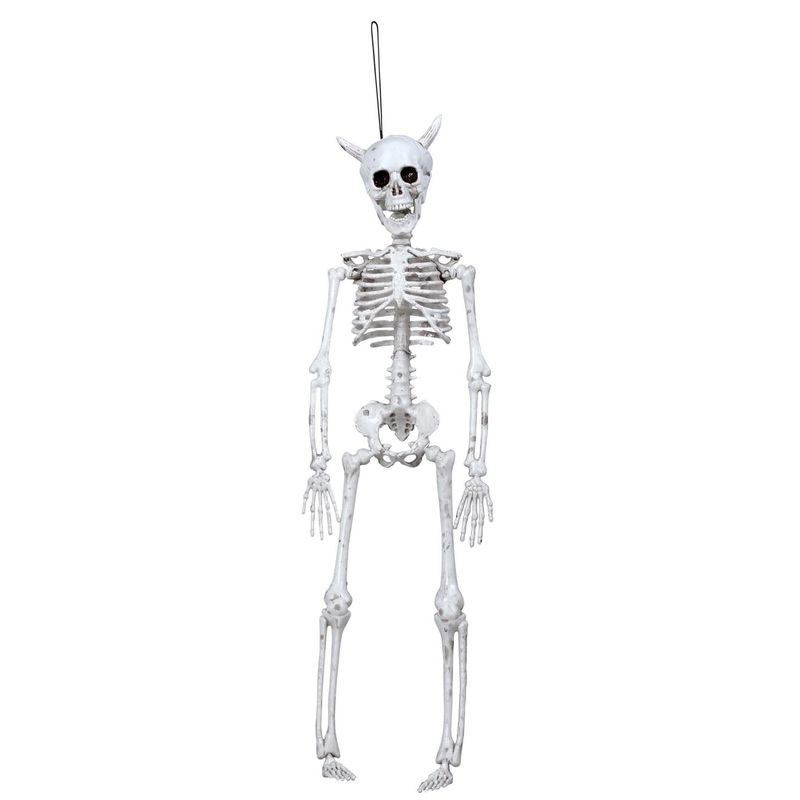 Skeleton hanging decoration with devil horns measuring approx. 40 cm.