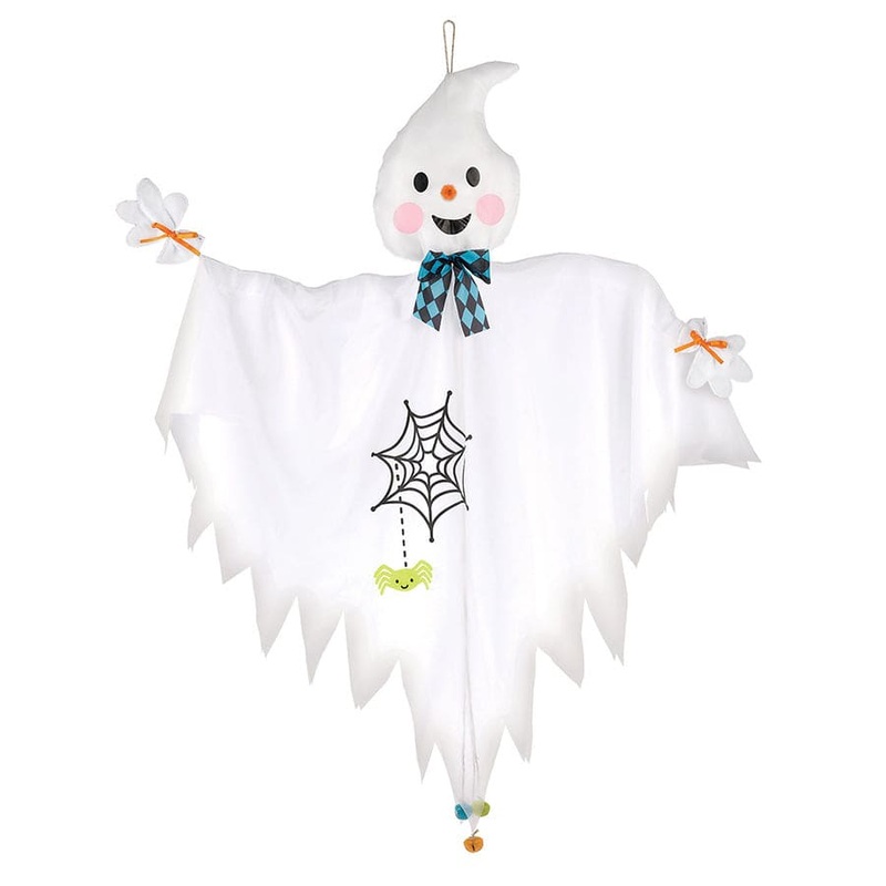 Family friendly smiling ghost for your porch! This happy ghost made of fabrick will entertein little trick or treaters on Halloween. Easy to hang and it measures 48-inches.
