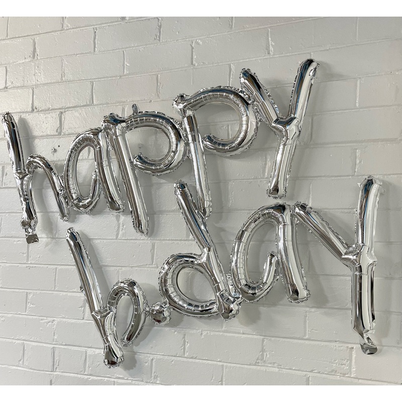 "Happy Bday" Silver Air-filled balloon phrase DecorationEASY TO INFLATE! NO HELIUM REQUIRED!SELF SEALING!Hanging decoration