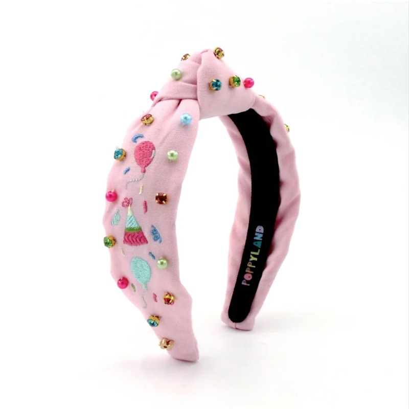 Elevate your party flair with this HBD headband, a fun accessory featuring confetti, party balloons, and a birthday hat. Perfect for your own birthday celebrations or dazzling at friends' parties throughout the year! It's party time with this HBD headband,