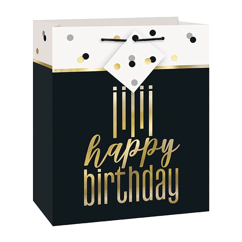 Happy Birthday Medium Bag, Black & Gold, 1 Count