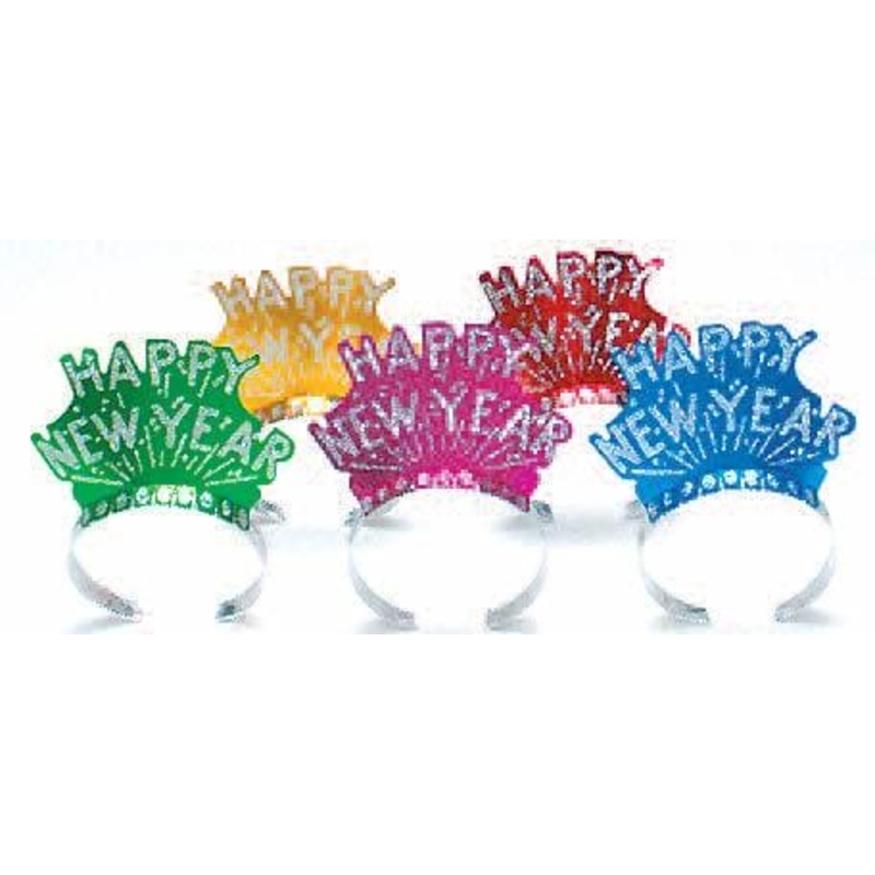Celebrate the arrival of the New Year with our Happy New Year Glitter Tiara. Be the fun host with the most at your New Years Eve Party Glitter tiaras are a great wearable accessory that can also go with a special costume or be used as a party favor for your guests. Different colors are available and these tiaras are sold separately.