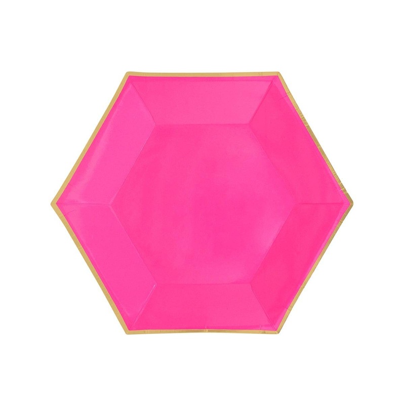 Hexagon Hot Pink Plates, 9 Inches, 8 Count