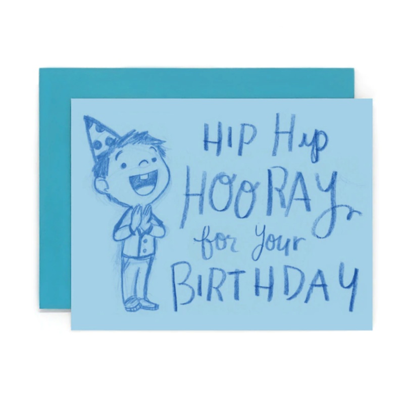 Hip hip hooray it's your birthday!!Folds to 4-1/4" x 5-1/2" (A2)Comes with a blueenvelopeCard is blank inside