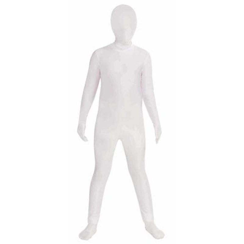Your child can blend in with the Halloween night with this White Im Invisible Childs Costume This skin tight suit is great by itself to make your child into a silhouette or for a great invisible effect The polyester spandex material is easy to see breath and speak through from the inside Make sure to get some of our reflective tape so that people in vehicles will notice your child Accessorize your childs suit with any of our child size accessories or wigs