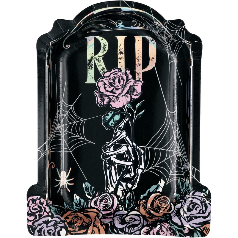 Elevate your Halloween party with our Iridescent Hauntings Large TombstoneShaped Lunch Paper Plates! These stylish plates feature pastel colours that will make your event stand out. With a generous size of 9 inches and a count of 8, these plates are the perfect addition to any spooky gathering.