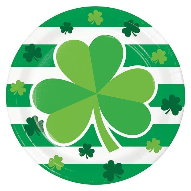 Celebrate St. Patrick's Day with our Irish Clover Dinner Plates! These 9" plates come in packs of 8 and feature multiple shamrocks set against a green and white theme. Made from heavyweight paperboard, these plates are cut resistant and microwave safe. Per