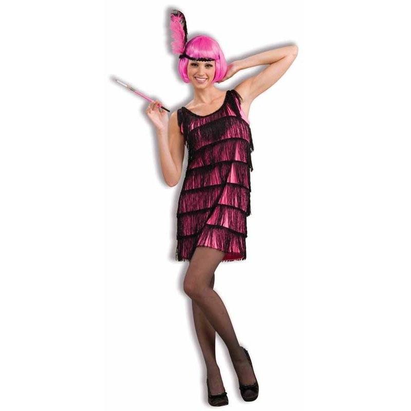 Our Jazzy Pink Flapper Adult Womens Costume is the perfect Costume for a Halloween Party The Jazzy Pink Flapper Costume includes pink fringed dress and feather headband This Jazzy Pink Flapper Costume is available in various adult sizes