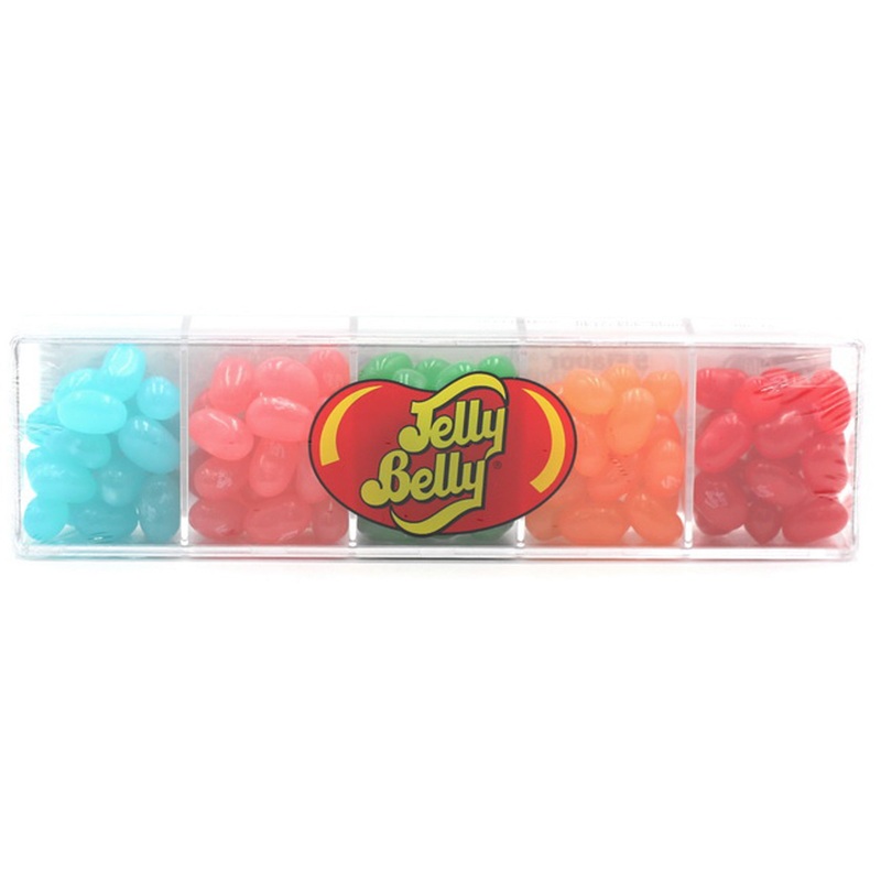 Delight any sweet lover with our Jelly Belly Clear Gift Box! With 5 delicious flavors and a convenient compartment gift box, it's perfect for gifting. Each bite will satisfy your cravings with its sweet and irresistible taste. Treat yourself or someone spe