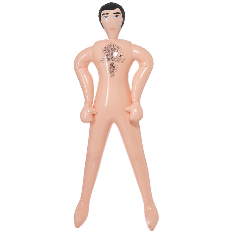 Inflatable blow up John doll with chest hair and face print.