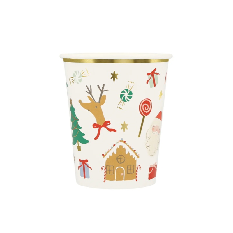 Deck the halls with Jolly Christmas Cups! Give your Santa-loving guests a smile with these fun, festive cups perfect for a merry holiday celebration!Shiny gold foil detailsSuitable for hot or cold drinksPack of 8Product capacity: 9oz