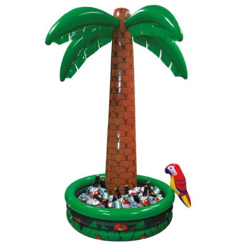 Chill your beverages under this palm tree which also enhances any summer party dcor scene in a cool way. Jumbo Palm Tree Cooler holds approximately 60 standard 12oz beverage cans packed in ice. Palm Tree Cooler is made of durable vinyl, stores easily, and