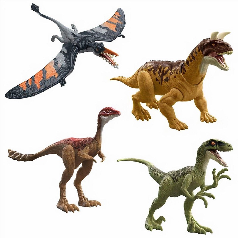 Get ready for more thrills and adventure with Jurassic World: Dominion! These Ferocious Pack dinosaurs inspired by the movie are known to herd, hunt and attack in packs. Choose from carnivores and herbivores, each about 7 in long, with movable joints, real