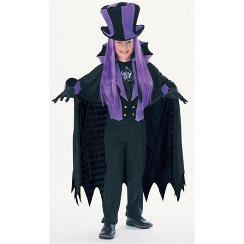Bring Vladimer from the dead with a velvety finsh matching costume. Costume Includes Velvet Vest with attached Collar & Cape, Velvet Hat with Hair, Velvet Gauntlets and a Jabot.