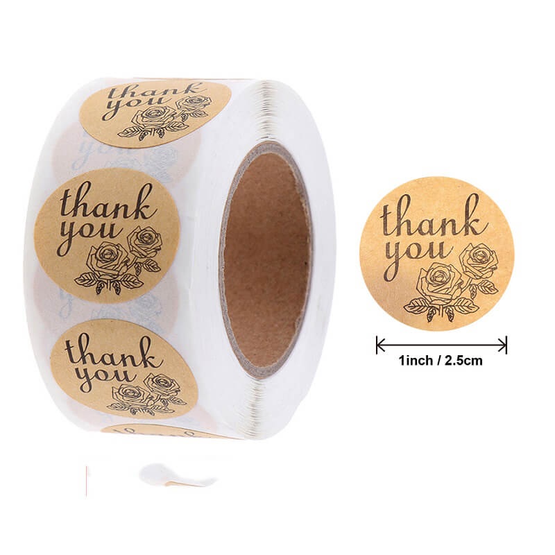 2.5cm Round Kraft Paper Thank You Rose Flower Sticker 50 Pack - B15.These adorable thank you stickersare a great way to express your sincere gratitude and say thank you to your customers for taking interest in your business and products. These pretty round