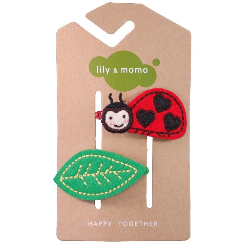 Little lady bug with heart spots paired with a green leaf makes a cute hair accessory. Here's a bug you wouldn't mind on your hair!Includes a set of (2) hair clipsApprox. Size: 2 x 1 inches