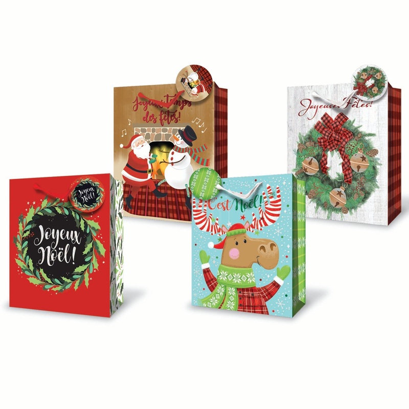 Discover a delightful surprise with this Large Christmas Gift Bag! Each bag is randomly selected with a unique, whimsical design. They are in French version. Perfect for a unique holiday experience!