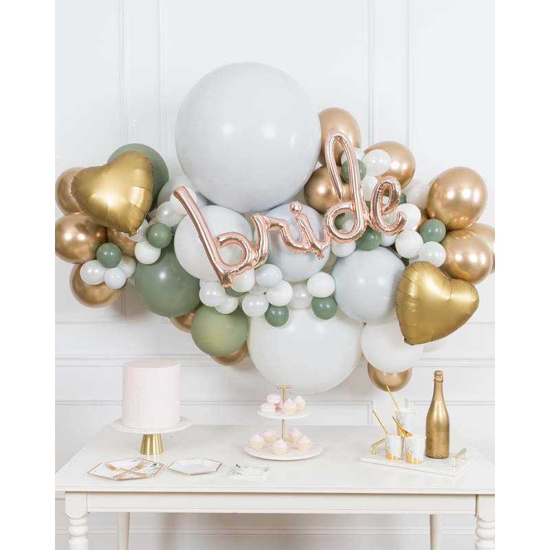 Bring some style to your bridal shower with this 6ft balloon garland. This gorgeous piece is dressed with cute heart foils and a bride script and can be installed above a sweets table or on a wall for a photo op.