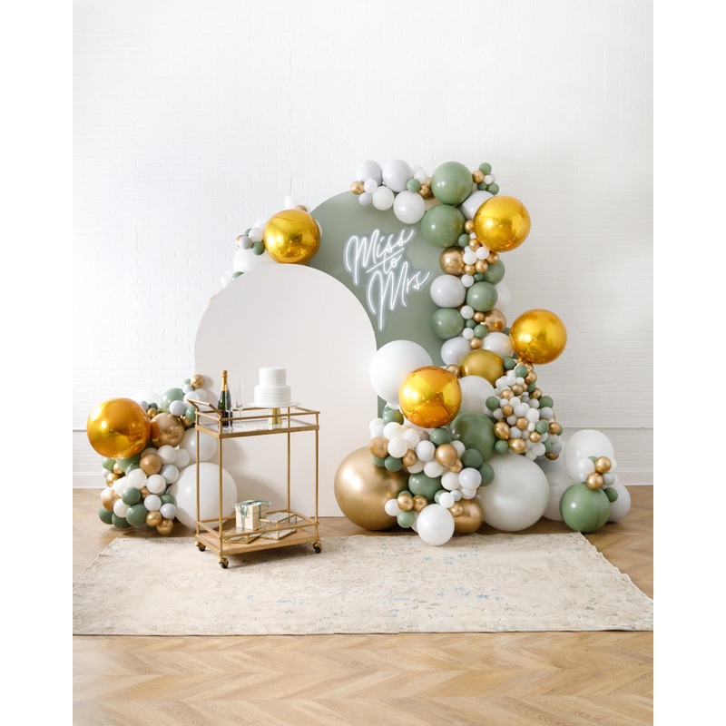 Stand out in style with this panel and balloon garland design. This includes a panel backdrops, neon Miss to Mrs sign and organic balloon garlands to match. Add foil accents to make your Photo Backdrops stand out even more!