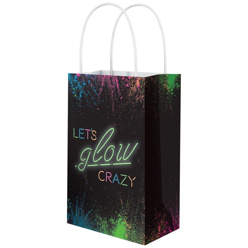 Get ready to party with Let's Glow Crazy Printed Kraft Treat Paper Bags! Perfect for any celebration, these 8 8 1/4 x 5 1/4 x 3 inchesbags are ideal for holding treats and adding a pop of color to your event. Spread the joy and watch your guests light up w