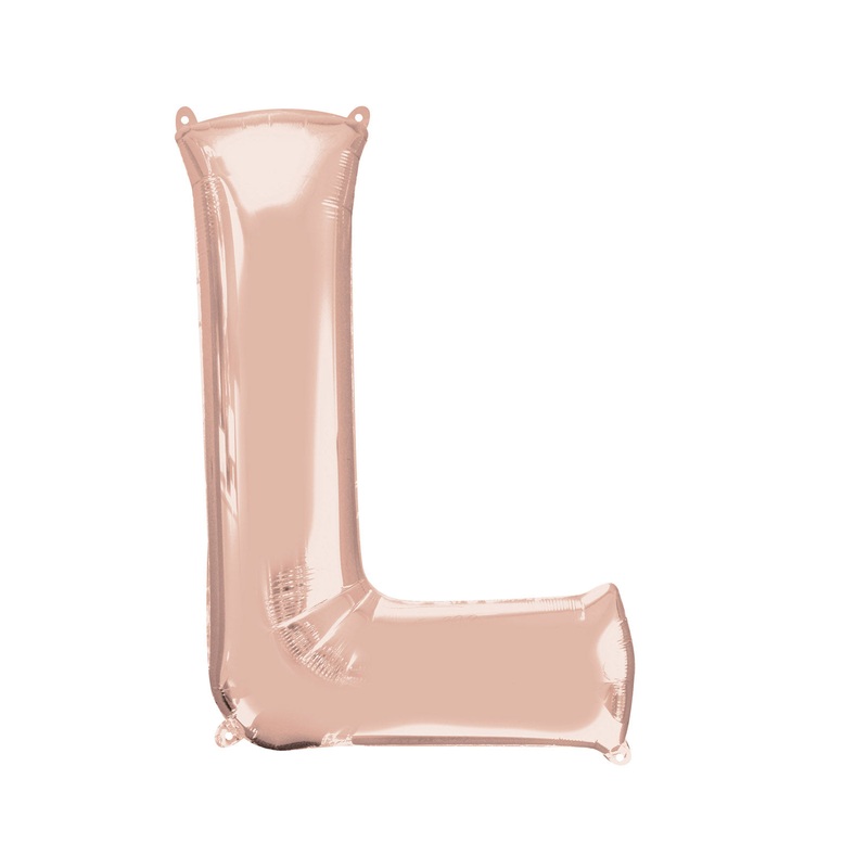 Letter Lrose gold super shape foil balloon measuring 32″ in height.