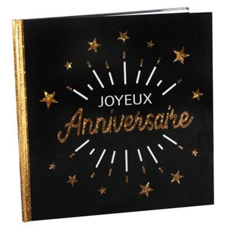 Le Livre d'Or Joyeux Anniversaire Noir et Or ajoute une touche de classe et raffine votre fte. Son design lgant, alliant le noir sophistiqu et l'or scintillant, en fait un choix parfait pour une clbration d'anniversaire mmorable. Ce livre d'or permet vos i
