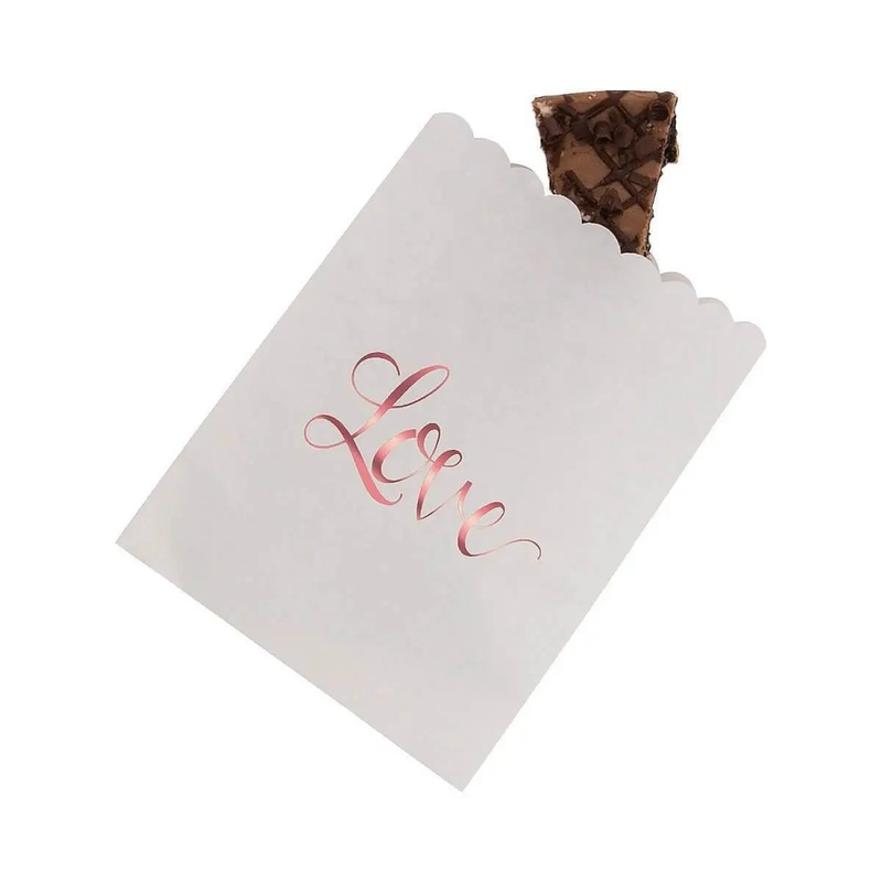 Elevate your events with the exquisite LOVE Rose Gold Foil Treat Bags. Designed to enhance romantic weddings and festive birthday parties, these bags bring a sophisticated touch to any gathering.