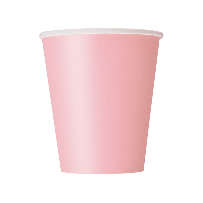 Pack of 14 pastel pink party paper cups. 270ml capacity.