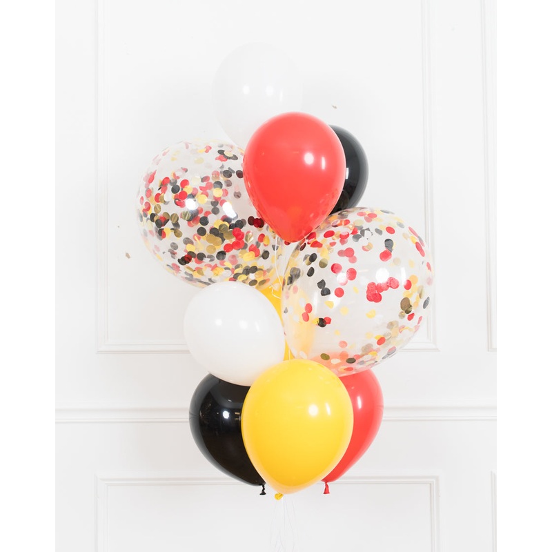 Bring fun to your Mickey Mouse party with our popular confetti bouquet. This helium-filled balloon bouquet includes bright balloons and matching confetti to add fun to any sweets table or backdrop.