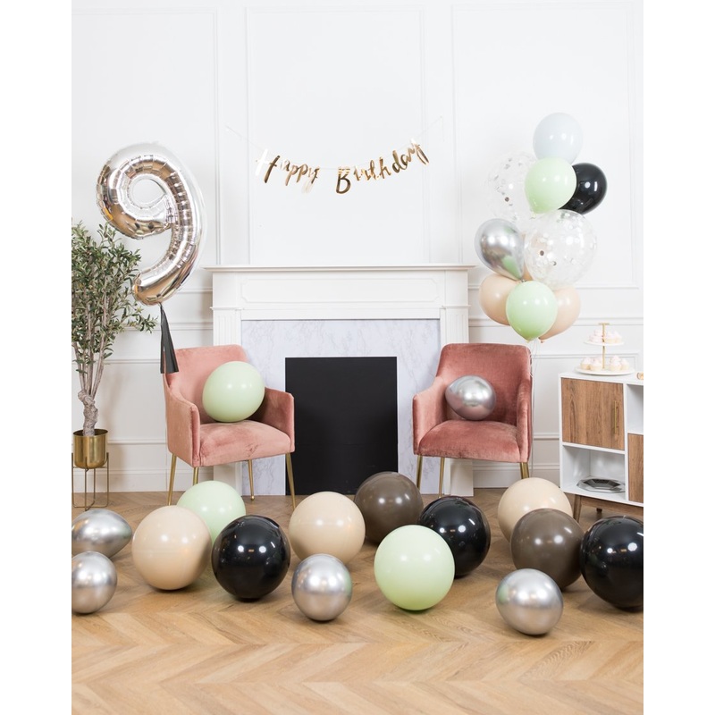 Balloon – sage, tan, brown, black, grey and silver, mocha
