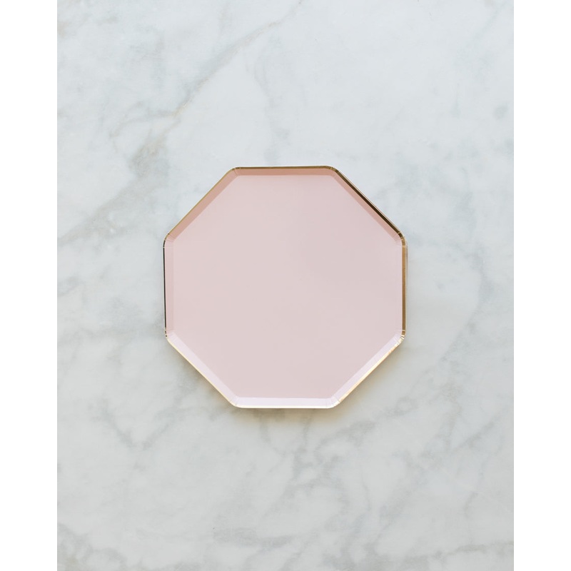 Pack of 8.FeaturesThese pretty dusky-pink dinner plates, with an elegant gold foil border, will add style to any party. Made from high-quality card with a superb gloss finish.Printed both sidesGold foil detailDetailsColor Palette: dusky pinkQuantity:pack o