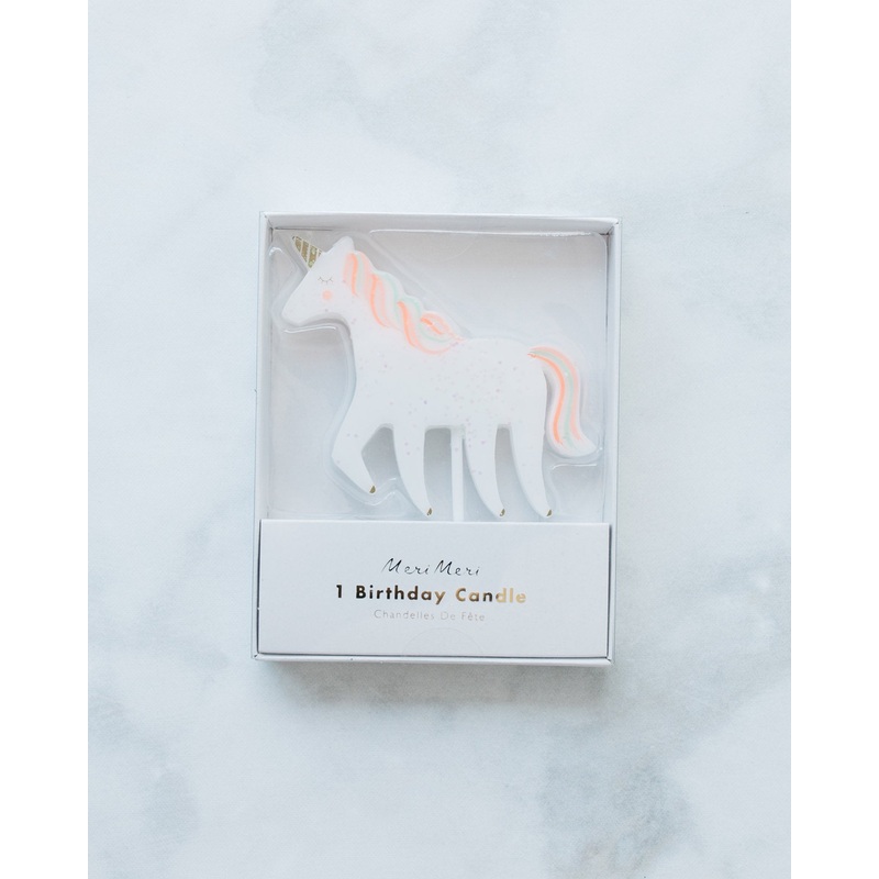 Pack of 1.FeaturesEnjoy this beautiful, glittering unicorn candle, complete with colorful mane and tail, all embellished with shiny gold foil. DetailsColor Palette:White & neon printIridescent glitter & gold foil detailQuantity:pack of 1Dimensions:H - appr