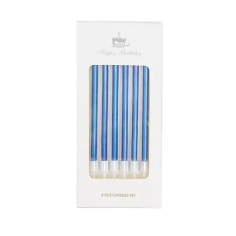Our Metallic Blue Taper Candle 06 Pack can be a valuable asset in creating an intimate dining experience. These exquisite candles are ideal for embellishing birthday cakes, cupcakes, and other delectable desserts. Standing at a height of approximately 11cm, their metallic blue hue imbues a sense of sophistication to any event.