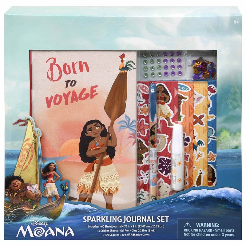 Inspire creativity with the Moana 2 Journal Set! This Disney-themed set includes a 60-sheet journal, 4 sticker sheets, a gel pen, glue, 100 sequins, and 30 self-adhesive gems. Perfect for kids who love Moana and crafting, this set is ideal for journaling,