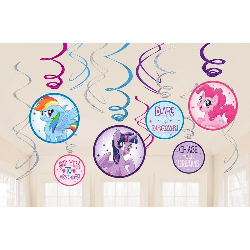 Add some dazzle to the room with our themed Swirl Decorations! With a mixture of foil swirls and foil swirls with themed cardboard cutouts, these are a fantastic way to decorate the ceiling, window or outdoor pergola. Pack includes 6 foil swirls, and 6 foil swirls with cutouts, all with attached plastic hooks making them SUPER easy to hang. Too cool!
