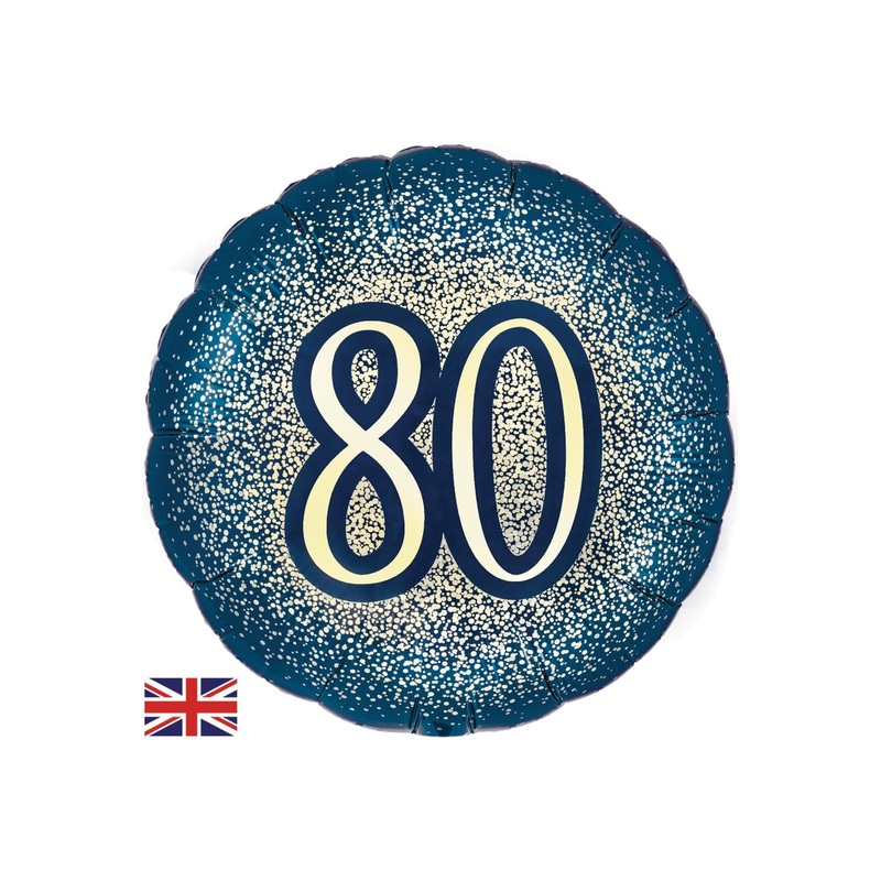 80th birthday glitter navy gold 18" circle shaped helium balloon printed both sides.Click & Collect orders: Balloon supplied inflated with helium.Delivery orders: Balloon supplied deflated.Balloon comes with a plastic weight or choose a foil weight here. W