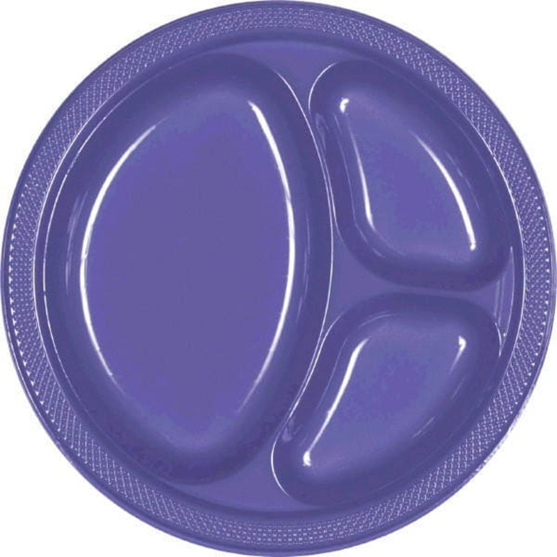 New Purple 10.25in Round Divided Plastic Plates 20 Ct