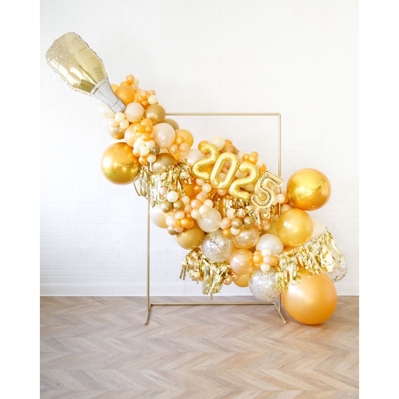 Instantly transform your NYE bash with our small frame and balloon garland design! With fun additional foils and gold accents, your party will have plenty of glitz and glam.