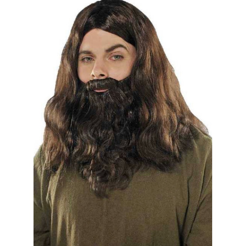 This Wig and Beard Set features a long wavy brown wig with a center part which sits just below the shoulders. This set comes with a matching beard. One size fits most Teens and Adults. Wig Cap recommended which sold separately.