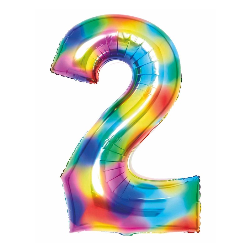 Giant number 2 rainbow splash super shape foil balloon measuring approx. 86 cm (34") in height.Click & Collect orders: Balloon supplied inflated with helium.Delivery orders: Balloon supplied deflated.We guarantee all foil balloons for 72 hours after inflat