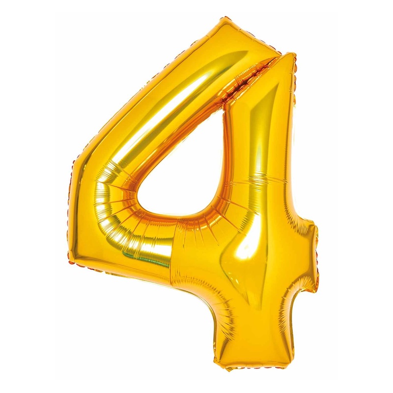 Giant number 4 goldsuper shape foil balloon measuring approx. 86 cm (34″) in height.