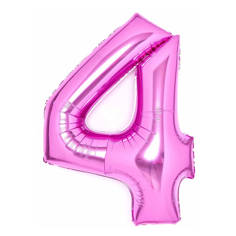 Giant number 4 pink super shape foil balloon measuring approx. 86 cm (34″) in height.