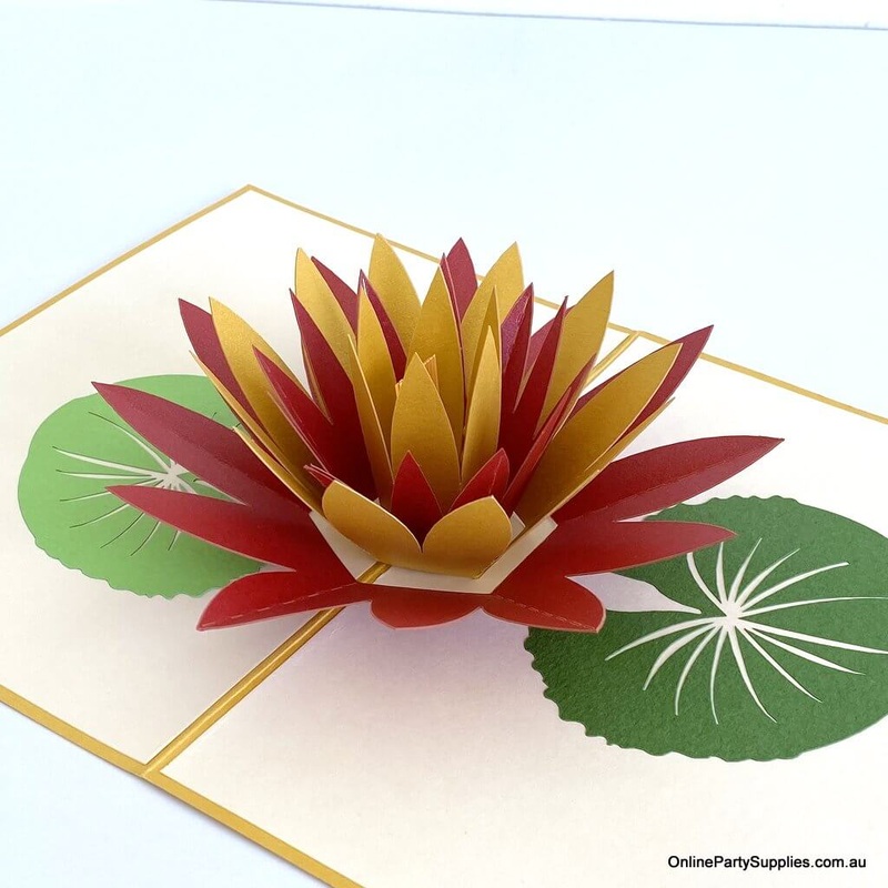 Handmade Orange and Red Lotus Pop-Up Card - Floral 3D Greeting Card.Celebrate special moments with this Orange and Red Lotus Flower 3D Pop Up Card. Handcrafted with care, it opens to reveal an elegant paper sculpture of a blooming lotus in vibrant orange a