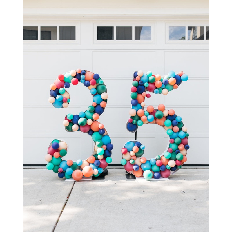 An eye-catching balloon piece fit for an outdoor event. These balloon mosaic numbers with bold colored balloons, perfect for a backdrop, sweets table and more! Complete the look with balloons from this collection.