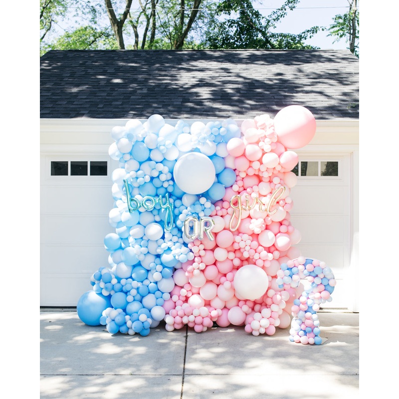 Create the ultimate backdrop with our balloon wall and mosaic set. This dreamy gender reveal inspired set includes a balloon wall and a question mark mosaic to make her gender reveal unforgettable.