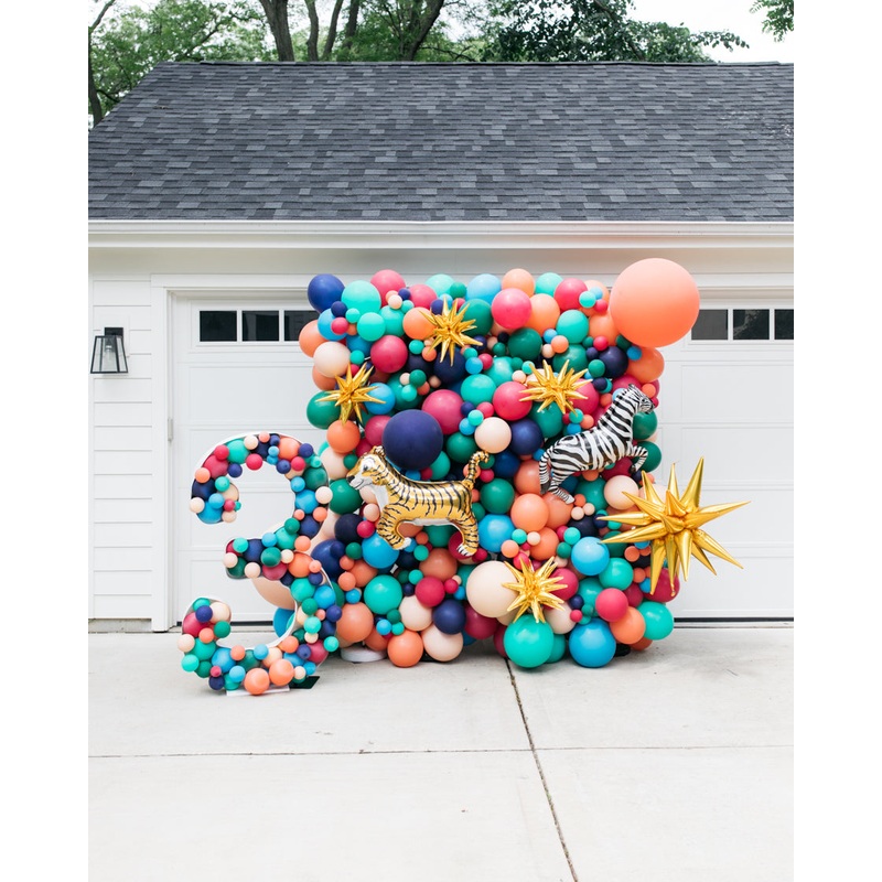 Create the ulitmate backdrop with our balloon wall and mosaic set. This themed kids birthday set includes a balloon wall with fun foil accents and a number mosaics to WOW them on their birthday.