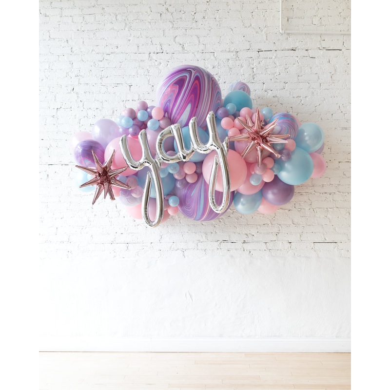 Spread some cheer with this eye-catching balloon garland. A great way to celebrate an important occasion, this piece can be installed on a fence, staircase or porch. Complete the look with giant balloons or balloon columns from this same collection.