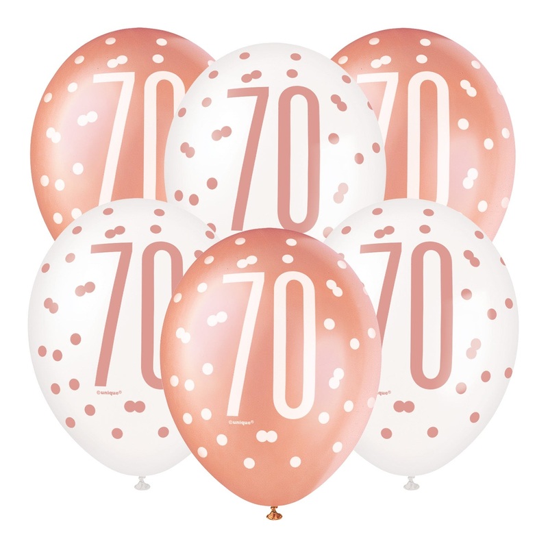 WZOZ546079918PACK OF 6 LATEX – 70th – ROSE GOLD GLITZ