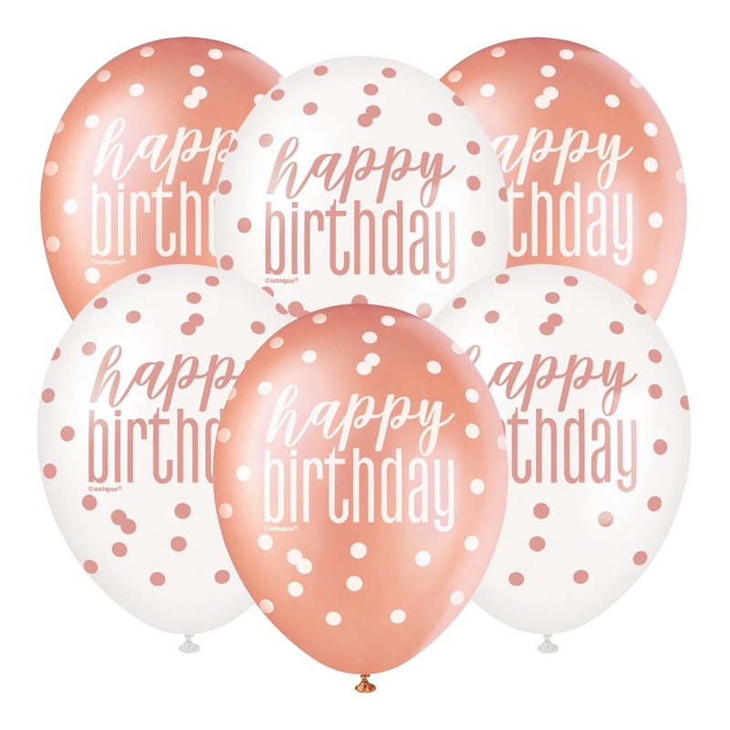 WZOZ546079874PACK OF 6 LATEX – HAPPY BIRTHDAY – ROSE GOLD