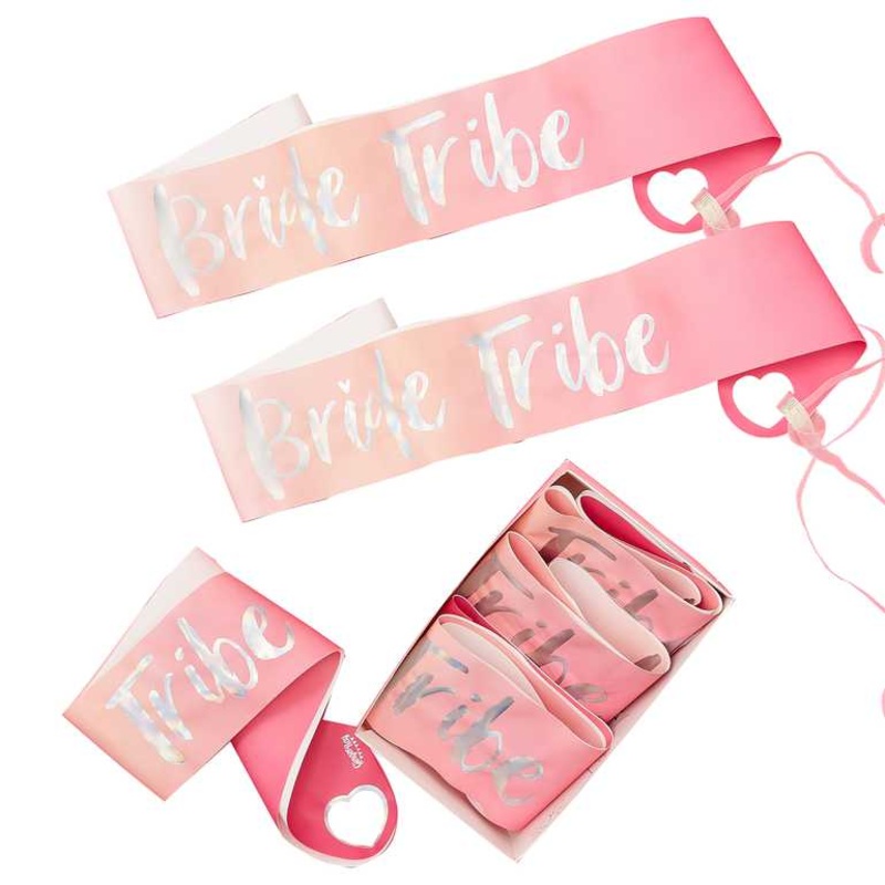 Ensure your tribe celebrate in style with these fab Bride Tribe Sashes. The pack comes complete with six hen party sashes.The pink sashes have stunning iridescent foiled "Bride Tribe" design which is sure to be loved by all the hens! Thread the pretty pink